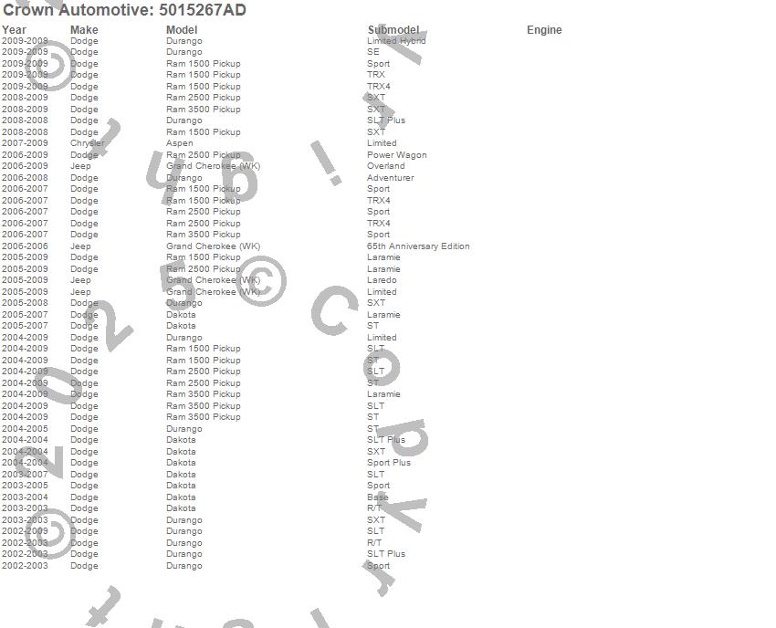 Aspen, Dakota, Durango, Grand Cherokee (WK), Ram 1500, Ram 2500, Ram 3500, Chrysler, Dodge, Jeep, 2009, 2008, 2007, 2006, 2005, 2004, 2003, 2002 more…