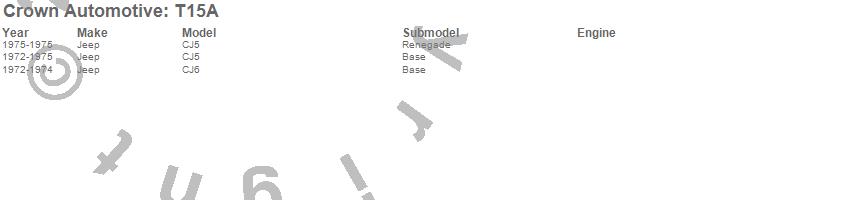 Crown Automotive Transmission Small Parts Kit T15A Features: