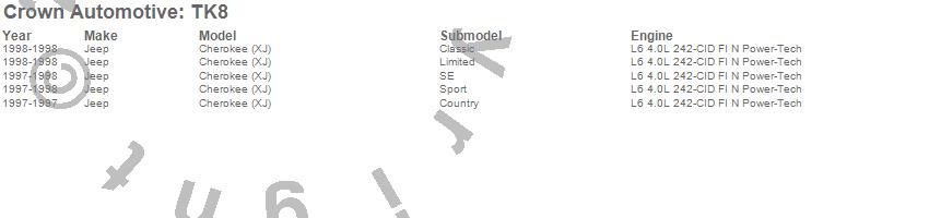 Crown Automotive Tune Up Kit TK8 Features: