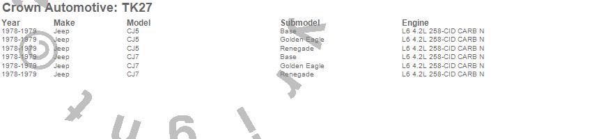Crown Automotive Tune Up Kit TK27 Features: