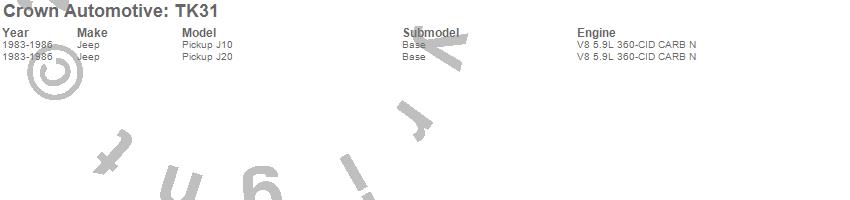 Crown Automotive Tune Up Kit TK31 Features: