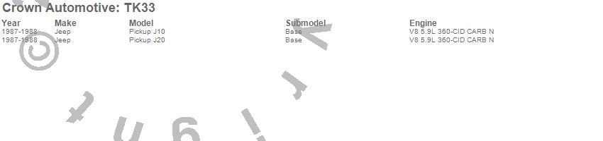 Crown Automotive is the premier manufacturer and distributor of quality replacement parts for Jeep® CJ™, Wrangler™, Cherokee™, Grand Cherokee™, Liberty™, and Commander™."From humble beginnings in 1963 in a small Boston storefront, Crown Automotive has consistently maintained its commitment to offering only quality parts and exceptional service. Today, with warehouses in Massachusetts, Georgia, Nevada, Spain, and the Czech Republic, totaling over 160,000 square feet, Crown Automotive continues to be the leader in quality replacement parts for Jeep® vehicles. With over 8,000 different parts in stock for Jeep® vehicles from 1942 on up, Crown has the largest stock of replacement parts for Jeep® vehicles, including factory-discontinued parts. In fact, many of the older Jeeps are still on (and off) the road thanks to Crown parts. The Crown line consists of axle, body, brake, clutch, cooling, driveline, electrical, engine, exhaust, fuel, steering, suspension, transmission and transfer case components. Crown Automotive also offers an exclusive line of component kits and accessory products. Because we know that Jeeps are driven harder than most other vehicles, we emphasize offering only quality parts. In fact, we test parts on Jeeps before distributing them to our dealers to insure that they meet our standards for quality. Crown also supports its entire line with a 12 month/12,000 mile warranty to insure our dealers and their customers of our commitment to offering quality parts. We know from experience that Jeep® owners would rather pay a little more for a good quality part that's backed by a strong guarantee. But we know that price is important as well. So, not only will you find Crown parts to be of exceptional quality, but you'll find them at a great price too.