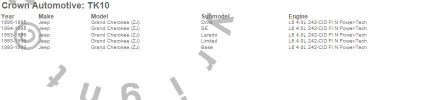 Crown Automotive Tune Up Kit TK10 Features: