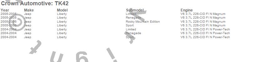 Crown Automotive is the premier manufacturer and distributor of quality replacement parts for Jeep® CJ™, Wrangler™, Cherokee™, Grand Cherokee™, Liberty™, and Commander™."From humble beginnings in 1963 in a small Boston storefront, Crown Automotive has consistently maintained its commitment to offering only quality parts and exceptional service. Today, with warehouses in Massachusetts, Georgia, Nevada, Spain, and the Czech Republic, totaling over 160,000 square feet, Crown Automotive continues to be the leader in quality replacement parts for Jeep® vehicles. With over 8,000 different parts in stock for Jeep® vehicles from 1942 on up, Crown has the largest stock of replacement parts for Jeep® vehicles, including factory-discontinued parts. In fact, many of the older Jeeps are still on (and off) the road thanks to Crown parts. The Crown line consists of axle, body, brake, clutch, cooling, driveline, electrical, engine, exhaust, fuel, steering, suspension, transmission and transfer case components. Crown Automotive also offers an exclusive line of component kits and accessory products. Because we know that Jeeps are driven harder than most other vehicles, we emphasize offering only quality parts. In fact, we test parts on Jeeps before distributing them to our dealers to insure that they meet our standards for quality. Crown also supports its entire line with a 12 month/12,000 mile warranty to insure our dealers and their customers of our commitment to offering quality parts. We know from experience that Jeep® owners would rather pay a little more for a good quality part that's backed by a strong guarantee. But we know that price is important as well. So, not only will you find Crown parts to be of exceptional quality, but you'll find them at a great price too.