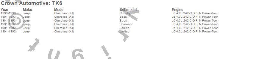 Crown Automotive Tune Up Kit TK6 Features: