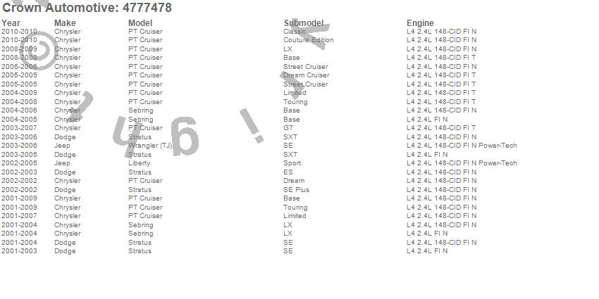 Liberty, PT Cruiser, Sebring, Stratus, Wrangler (TJ), Chrysler, Dodge, Jeep, 2010, 2009, 2008, 2007, 2006, 2005, 2004, 2003, 2002, 2001 more…