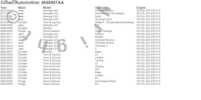 Grand Caravan, Pacifica, Town & Country, Wrangler (JK), Chrysler, Dodge, Jeep, 2011, 2010, 2009, 2008, 2007, 2006, 2005, 2004 more…