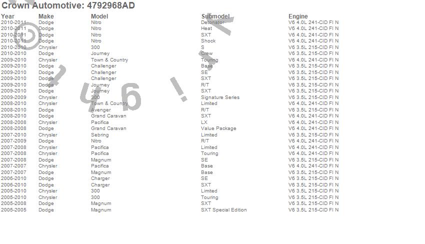 300, Avenger, Challenger, Charger, Grand Caravan, Journey, Magnum, Nitro, Pacifica, Sebring, Town & Country, Chrysler, Dodge, 2011, 2010, 2009, 2008, 2007, 2006, 2005 more…