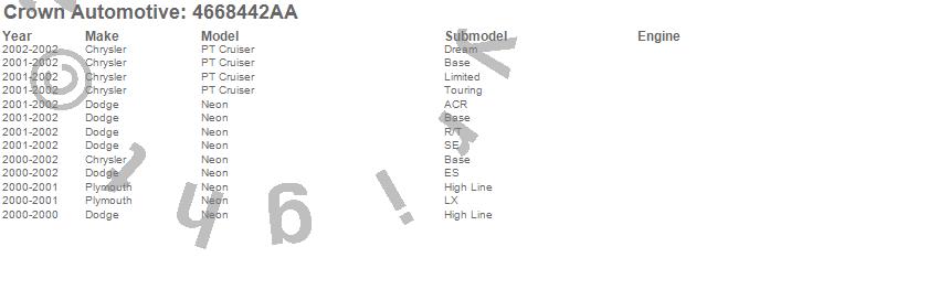 Neon, PT Cruiser, Chrysler, Dodge, Plymouth, 2002, 2001, 2000 more…