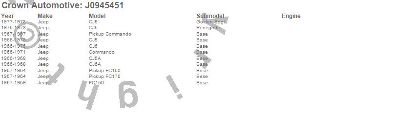 Crown Automotive is the premier manufacturer and distributor of quality replacement parts for Jeep® CJ™, Wrangler™, Cherokee™, Grand Cherokee™, Liberty™, and Commander™."From humble beginnings in 1963 in a small Boston storefront, Crown Automotive has consistently maintained its commitment to offering only quality parts and exceptional service. Today, with warehouses in Massachusetts, Georgia, Nevada, Spain, and the Czech Republic, totaling over 160,000 square feet, Crown Automotive continues to be the leader in quality replacement parts for Jeep® vehicles. With over 8,000 different parts in stock for Jeep® vehicles from 1942 on up, Crown has the largest stock of replacement parts for Jeep® vehicles, including factory-discontinued parts. In fact, many of the older Jeeps are still on (and off) the road thanks to Crown parts. The Crown line consists of axle, body, brake, clutch, cooling, driveline, electrical, engine, exhaust, fuel, steering, suspension, transmission and transfer case components. Crown Automotive also offers an exclusive line of component kits and accessory products. Because we know that Jeeps are driven harder than most other vehicles, we emphasize offering only quality parts. In fact, we test parts on Jeeps before distributing them to our dealers to insure that they meet our standards for quality. Crown also supports its entire line with a 12 month/12,000 mile warranty to insure our dealers and their customers of our commitment to offering quality parts. We know from experience that Jeep® owners would rather pay a little more for a good quality part that's backed by a strong guarantee. But we know that price is important as well. So, not only will you find Crown parts to be of exceptional quality, but you'll find them at a great price too.