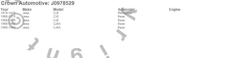 Crown Automotive is the premier manufacturer and distributor of quality replacement parts for Jeep® CJ™, Wrangler™, Cherokee™, Grand Cherokee™, Liberty™, and Commander™."From humble beginnings in 1963 in a small Boston storefront, Crown Automotive has consistently maintained its commitment to offering only quality parts and exceptional service. Today, with warehouses in Massachusetts, Georgia, Nevada, Spain, and the Czech Republic, totaling over 160,000 square feet, Crown Automotive continues to be the leader in quality replacement parts for Jeep® vehicles. With over 8,000 different parts in stock for Jeep® vehicles from 1942 on up, Crown has the largest stock of replacement parts for Jeep® vehicles, including factory-discontinued parts. In fact, many of the older Jeeps are still on (and off) the road thanks to Crown parts. The Crown line consists of axle, body, brake, clutch, cooling, driveline, electrical, engine, exhaust, fuel, steering, suspension, transmission and transfer case components. Crown Automotive also offers an exclusive line of component kits and accessory products. Because we know that Jeeps are driven harder than most other vehicles, we emphasize offering only quality parts. In fact, we test parts on Jeeps before distributing them to our dealers to insure that they meet our standards for quality. Crown also supports its entire line with a 12 month/12,000 mile warranty to insure our dealers and their customers of our commitment to offering quality parts. We know from experience that Jeep® owners would rather pay a little more for a good quality part that's backed by a strong guarantee. But we know that price is important as well. So, not only will you find Crown parts to be of exceptional quality, but you'll find them at a great price too.