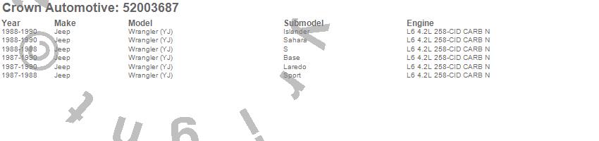 Crown Automotive is the premier manufacturer and distributor of quality replacement parts for Jeep® CJ™, Wrangler™, Cherokee™, Grand Cherokee™, Liberty™, and Commander™."From humble beginnings in 1963 in a small Boston storefront, Crown Automotive has consistently maintained its commitment to offering only quality parts and exceptional service. Today, with warehouses in Massachusetts, Georgia, Nevada, Spain, and the Czech Republic, totaling over 160,000 square feet, Crown Automotive continues to be the leader in quality replacement parts for Jeep® vehicles. With over 8,000 different parts in stock for Jeep® vehicles from 1942 on up, Crown has the largest stock of replacement parts for Jeep® vehicles, including factory-discontinued parts. In fact, many of the older Jeeps are still on (and off) the road thanks to Crown parts. The Crown line consists of axle, body, brake, clutch, cooling, driveline, electrical, engine, exhaust, fuel, steering, suspension, transmission and transfer case components. Crown Automotive also offers an exclusive line of component kits and accessory products. Because we know that Jeeps are driven harder than most other vehicles, we emphasize offering only quality parts. In fact, we test parts on Jeeps before distributing them to our dealers to insure that they meet our standards for quality. Crown also supports its entire line with a 12 month/12,000 mile warranty to insure our dealers and their customers of our commitment to offering quality parts. We know from experience that Jeep® owners would rather pay a little more for a good quality part that's backed by a strong guarantee. But we know that price is important as well. So, not only will you find Crown parts to be of exceptional quality, but you'll find them at a great price too.