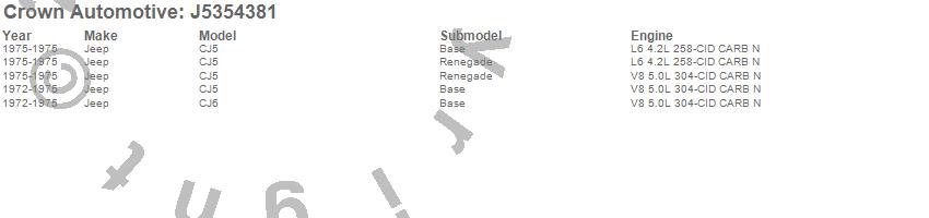 Crown Automotive is the premier manufacturer and distributor of quality replacement parts for Jeep® CJ™, Wrangler™, Cherokee™, Grand Cherokee™, Liberty™, and Commander™."From humble beginnings in 1963 in a small Boston storefront, Crown Automotive has consistently maintained its commitment to offering only quality parts and exceptional service. Today, with warehouses in Massachusetts, Georgia, Nevada, Spain, and the Czech Republic, totaling over 160,000 square feet, Crown Automotive continues to be the leader in quality replacement parts for Jeep® vehicles. With over 8,000 different parts in stock for Jeep® vehicles from 1942 on up, Crown has the largest stock of replacement parts for Jeep® vehicles, including factory-discontinued parts. In fact, many of the older Jeeps are still on (and off) the road thanks to Crown parts. The Crown line consists of axle, body, brake, clutch, cooling, driveline, electrical, engine, exhaust, fuel, steering, suspension, transmission and transfer case components. Crown Automotive also offers an exclusive line of component kits and accessory products. Because we know that Jeeps are driven harder than most other vehicles, we emphasize offering only quality parts. In fact, we test parts on Jeeps before distributing them to our dealers to insure that they meet our standards for quality. Crown also supports its entire line with a 12 month/12,000 mile warranty to insure our dealers and their customers of our commitment to offering quality parts. We know from experience that Jeep® owners would rather pay a little more for a good quality part that's backed by a strong guarantee. But we know that price is important as well. So, not only will you find Crown parts to be of exceptional quality, but you'll find them at a great price too.
