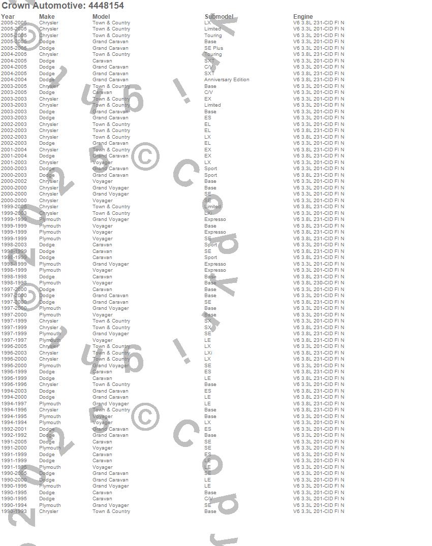 Caravan, Grand Caravan, Grand Voyager, Town & Country, Voyager, Chrysler, Dodge, Plymouth, 2005, 2004, 2003, 2002, 2001, 2000, 1999, 1998, 1997, 1996, 1995, 1994 more…