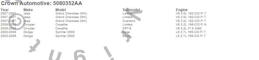 Crossfire, Grand Cherokee (WK), Sprinter 2500, Sprinter 3500, Chrysler, Dodge, Jeep, 2008, 2007, 2006, 2005, 2004, 2003 more…