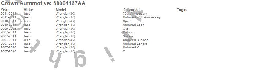 Crown Automotive is the premier manufacturer and distributor of quality replacement parts for Jeep® CJ™, Wrangler™, Cherokee™, Grand Cherokee™, Liberty™, and Commander™."From humble beginnings in 1963 in a small Boston storefront, Crown Automotive has consistently maintained its commitment to offering only quality parts and exceptional service. Today, with warehouses in Massachusetts, Georgia, Nevada, Spain, and the Czech Republic, totaling over 160,000 square feet, Crown Automotive continues to be the leader in quality replacement parts for Jeep® vehicles. With over 8,000 different parts in stock for Jeep® vehicles from 1942 on up, Crown has the largest stock of replacement parts for Jeep® vehicles, including factory-discontinued parts. In fact, many of the older Jeeps are still on (and off) the road thanks to Crown parts. The Crown line consists of axle, body, brake, clutch, cooling, driveline, electrical, engine, exhaust, fuel, steering, suspension, transmission and transfer case components. Crown Automotive also offers an exclusive line of component kits and accessory products. Because we know that Jeeps are driven harder than most other vehicles, we emphasize offering only quality parts. In fact, we test parts on Jeeps before distributing them to our dealers to insure that they meet our standards for quality. Crown also supports its entire line with a 12 month/12,000 mile warranty to insure our dealers and their customers of our commitment to offering quality parts. We know from experience that Jeep® owners would rather pay a little more for a good quality part that's backed by a strong guarantee. But we know that price is important as well. So, not only will you find Crown parts to be of exceptional quality, but you'll find them at a great price too.