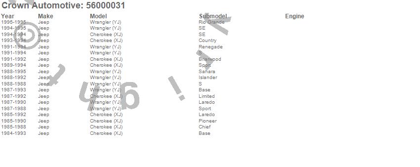 Cherokee (XJ), Wrangler (YJ), Jeep, 1995, 1994, 1993, 1992, 1991, 1990, 1989, 1988, 1987, 1986, 1985, 1984 more…