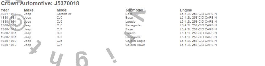 Crown Automotive is the premier manufacturer and distributor of quality replacement parts for Jeep® CJ™, Wrangler™, Cherokee™, Grand Cherokee™, Liberty™, and Commander™."From humble beginnings in 1963 in a small Boston storefront, Crown Automotive has consistently maintained its commitment to offering only quality parts and exceptional service. Today, with warehouses in Massachusetts, Georgia, Nevada, Spain, and the Czech Republic, totaling over 160,000 square feet, Crown Automotive continues to be the leader in quality replacement parts for Jeep® vehicles. With over 8,000 different parts in stock for Jeep® vehicles from 1942 on up, Crown has the largest stock of replacement parts for Jeep® vehicles, including factory-discontinued parts. In fact, many of the older Jeeps are still on (and off) the road thanks to Crown parts. The Crown line consists of axle, body, brake, clutch, cooling, driveline, electrical, engine, exhaust, fuel, steering, suspension, transmission and transfer case components. Crown Automotive also offers an exclusive line of component kits and accessory products. Because we know that Jeeps are driven harder than most other vehicles, we emphasize offering only quality parts. In fact, we test parts on Jeeps before distributing them to our dealers to insure that they meet our standards for quality. Crown also supports its entire line with a 12 month/12,000 mile warranty to insure our dealers and their customers of our commitment to offering quality parts. We know from experience that Jeep® owners would rather pay a little more for a good quality part that's backed by a strong guarantee. But we know that price is important as well. So, not only will you find Crown parts to be of exceptional quality, but you'll find them at a great price too.