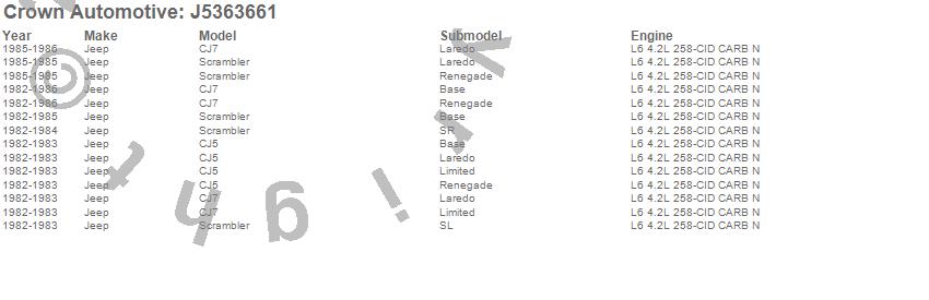 Crown Automotive is the premier manufacturer and distributor of quality replacement parts for Jeep® CJ™, Wrangler™, Cherokee™, Grand Cherokee™, Liberty™, and Commander™."From humble beginnings in 1963 in a small Boston storefront, Crown Automotive has consistently maintained its commitment to offering only quality parts and exceptional service. Today, with warehouses in Massachusetts, Georgia, Nevada, Spain, and the Czech Republic, totaling over 160,000 square feet, Crown Automotive continues to be the leader in quality replacement parts for Jeep® vehicles. With over 8,000 different parts in stock for Jeep® vehicles from 1942 on up, Crown has the largest stock of replacement parts for Jeep® vehicles, including factory-discontinued parts. In fact, many of the older Jeeps are still on (and off) the road thanks to Crown parts. The Crown line consists of axle, body, brake, clutch, cooling, driveline, electrical, engine, exhaust, fuel, steering, suspension, transmission and transfer case components. Crown Automotive also offers an exclusive line of component kits and accessory products. Because we know that Jeeps are driven harder than most other vehicles, we emphasize offering only quality parts. In fact, we test parts on Jeeps before distributing them to our dealers to insure that they meet our standards for quality. Crown also supports its entire line with a 12 month/12,000 mile warranty to insure our dealers and their customers of our commitment to offering quality parts. We know from experience that Jeep® owners would rather pay a little more for a good quality part that's backed by a strong guarantee. But we know that price is important as well. So, not only will you find Crown parts to be of exceptional quality, but you'll find them at a great price too.