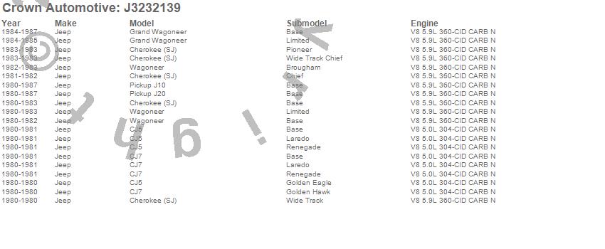 Cherokee (SJ), CJ5, CJ7, DJ5, Grand Wagoneer, J10, J20, Wagoneer, Jeep, 1987, 1986, 1985, 1984, 1983, 1982, 1981, 1980 more…