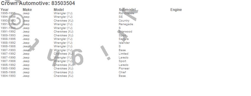 Cherokee (XJ), Wrangler (YJ), Jeep, 1995, 1994, 1993, 1992, 1991, 1990, 1989, 1988, 1987, 1986, 1985, 1984 more…