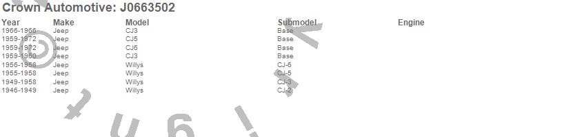 Crown Automotive is the premier manufacturer and distributor of quality replacement parts for Jeep® CJ™, Wrangler™, Cherokee™, Grand Cherokee™, Liberty™, and Commander™."From humble beginnings in 1963 in a small Boston storefront, Crown Automotive has consistently maintained its commitment to offering only quality parts and exceptional service. Today, with warehouses in Massachusetts, Georgia, Nevada, Spain, and the Czech Republic, totaling over 160,000 square feet, Crown Automotive continues to be the leader in quality replacement parts for Jeep® vehicles. With over 8,000 different parts in stock for Jeep® vehicles from 1942 on up, Crown has the largest stock of replacement parts for Jeep® vehicles, including factory-discontinued parts. In fact, many of the older Jeeps are still on (and off) the road thanks to Crown parts. The Crown line consists of axle, body, brake, clutch, cooling, driveline, electrical, engine, exhaust, fuel, steering, suspension, transmission and transfer case components. Crown Automotive also offers an exclusive line of component kits and accessory products. Because we know that Jeeps are driven harder than most other vehicles, we emphasize offering only quality parts. In fact, we test parts on Jeeps before distributing them to our dealers to insure that they meet our standards for quality. Crown also supports its entire line with a 12 month/12,000 mile warranty to insure our dealers and their customers of our commitment to offering quality parts. We know from experience that Jeep® owners would rather pay a little more for a good quality part that's backed by a strong guarantee. But we know that price is important as well. So, not only will you find Crown parts to be of exceptional quality, but you'll find them at a great price too.