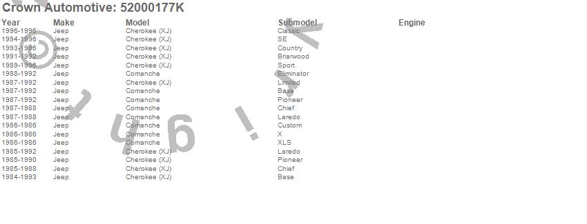 Cherokee (XJ), Comanche, Jeep, 1996, 1995, 1994, 1993, 1992, 1991, 1990, 1989, 1988, 1987, 1986, 1985, 1984 more…