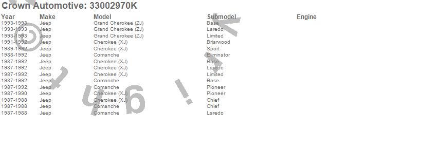 Crown Automotive is the premier manufacturer and distributor of quality replacement parts for Jeep® CJ™, Wrangler™, Cherokee™, Grand Cherokee™, Liberty™, and Commander™."From humble beginnings in 1963 in a small Boston storefront, Crown Automotive has consistently maintained its commitment to offering only quality parts and exceptional service. Today, with warehouses in Massachusetts, Georgia, Nevada, Spain, and the Czech Republic, totaling over 160,000 square feet, Crown Automotive continues to be the leader in quality replacement parts for Jeep® vehicles. With over 8,000 different parts in stock for Jeep® vehicles from 1942 on up, Crown has the largest stock of replacement parts for Jeep® vehicles, including factory-discontinued parts. In fact, many of the older Jeeps are still on (and off) the road thanks to Crown parts. The Crown line consists of axle, body, brake, clutch, cooling, driveline, electrical, engine, exhaust, fuel, steering, suspension, transmission and transfer case components. Crown Automotive also offers an exclusive line of component kits and accessory products. Because we know that Jeeps are driven harder than most other vehicles, we emphasize offering only quality parts. In fact, we test parts on Jeeps before distributing them to our dealers to insure that they meet our standards for quality. Crown also supports its entire line with a 12 month/12,000 mile warranty to insure our dealers and their customers of our commitment to offering quality parts. We know from experience that Jeep® owners would rather pay a little more for a good quality part that's backed by a strong guarantee. But we know that price is important as well. So, not only will you find Crown parts to be of exceptional quality, but you'll find them at a great price too.