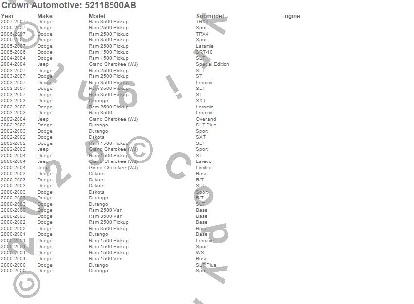 Dakota, Durango, Grand Cherokee (WJ), Ram 1500, Ram 1500 Van, Ram 2500, Ram 2500 Van, Ram 3500, Ram 3500 Van, Dodge, Jeep, 2007, 2006, 2005, 2004, 2003, 2002, 2001, 2000 more…