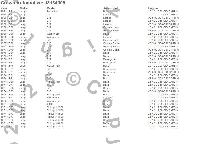 CJ5, CJ6, CJ7, J-100, J-2500, J-2600, J-3800, J-4500, J-4600, J-4700, J-4800, J10, J20, Scrambler, Wagoneer, Jeep, 1981, 1980, 1979, 1978 more…