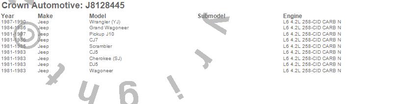 Cherokee (SJ), CJ5, CJ7, DJ5, Grand Wagoneer, J10, Scrambler, Wagoneer, Wrangler (YJ), Jeep, 1990, 1989, 1988, 1987, 1986, 1985, 1984, 1983, 1982, 1981 more…