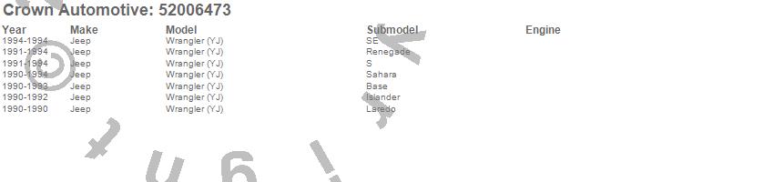Crown Automotive is the premier manufacturer and distributor of quality replacement parts for Jeep® CJ™, Wrangler™, Cherokee™, Grand Cherokee™, Liberty™, and Commander™."From humble beginnings in 1963 in a small Boston storefront, Crown Automotive has consistently maintained its commitment to offering only quality parts and exceptional service. Today, with warehouses in Massachusetts, Georgia, Nevada, Spain, and the Czech Republic, totaling over 160,000 square feet, Crown Automotive continues to be the leader in quality replacement parts for Jeep® vehicles. With over 8,000 different parts in stock for Jeep® vehicles from 1942 on up, Crown has the largest stock of replacement parts for Jeep® vehicles, including factory-discontinued parts. In fact, many of the older Jeeps are still on (and off) the road thanks to Crown parts. The Crown line consists of axle, body, brake, clutch, cooling, driveline, electrical, engine, exhaust, fuel, steering, suspension, transmission and transfer case components. Crown Automotive also offers an exclusive line of component kits and accessory products. Because we know that Jeeps are driven harder than most other vehicles, we emphasize offering only quality parts. In fact, we test parts on Jeeps before distributing them to our dealers to insure that they meet our standards for quality. Crown also supports its entire line with a 12 month/12,000 mile warranty to insure our dealers and their customers of our commitment to offering quality parts. We know from experience that Jeep® owners would rather pay a little more for a good quality part that's backed by a strong guarantee. But we know that price is important as well. So, not only will you find Crown parts to be of exceptional quality, but you'll find them at a great price too.