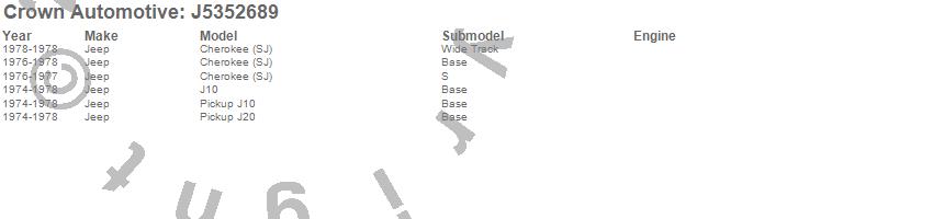 Crown Automotive is the premier manufacturer and distributor of quality replacement parts for Jeep® CJ™, Wrangler™, Cherokee™, Grand Cherokee™, Liberty™, and Commander™."From humble beginnings in 1963 in a small Boston storefront, Crown Automotive has consistently maintained its commitment to offering only quality parts and exceptional service. Today, with warehouses in Massachusetts, Georgia, Nevada, Spain, and the Czech Republic, totaling over 160,000 square feet, Crown Automotive continues to be the leader in quality replacement parts for Jeep® vehicles. With over 8,000 different parts in stock for Jeep® vehicles from 1942 on up, Crown has the largest stock of replacement parts for Jeep® vehicles, including factory-discontinued parts. In fact, many of the older Jeeps are still on (and off) the road thanks to Crown parts. The Crown line consists of axle, body, brake, clutch, cooling, driveline, electrical, engine, exhaust, fuel, steering, suspension, transmission and transfer case components. Crown Automotive also offers an exclusive line of component kits and accessory products. Because we know that Jeeps are driven harder than most other vehicles, we emphasize offering only quality parts. In fact, we test parts on Jeeps before distributing them to our dealers to insure that they meet our standards for quality. Crown also supports its entire line with a 12 month/12,000 mile warranty to insure our dealers and their customers of our commitment to offering quality parts. We know from experience that Jeep® owners would rather pay a little more for a good quality part that's backed by a strong guarantee. But we know that price is important as well. So, not only will you find Crown parts to be of exceptional quality, but you'll find them at a great price too.
