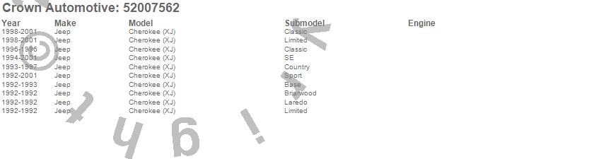 Crown Automotive is the premier manufacturer and distributor of quality replacement parts for Jeep® CJ™, Wrangler™, Cherokee™, Grand Cherokee™, Liberty™, and Commander™."From humble beginnings in 1963 in a small Boston storefront, Crown Automotive has consistently maintained its commitment to offering only quality parts and exceptional service. Today, with warehouses in Massachusetts, Georgia, Nevada, Spain, and the Czech Republic, totaling over 160,000 square feet, Crown Automotive continues to be the leader in quality replacement parts for Jeep® vehicles. With over 8,000 different parts in stock for Jeep® vehicles from 1942 on up, Crown has the largest stock of replacement parts for Jeep® vehicles, including factory-discontinued parts. In fact, many of the older Jeeps are still on (and off) the road thanks to Crown parts. The Crown line consists of axle, body, brake, clutch, cooling, driveline, electrical, engine, exhaust, fuel, steering, suspension, transmission and transfer case components. Crown Automotive also offers an exclusive line of component kits and accessory products. Because we know that Jeeps are driven harder than most other vehicles, we emphasize offering only quality parts. In fact, we test parts on Jeeps before distributing them to our dealers to insure that they meet our standards for quality. Crown also supports its entire line with a 12 month/12,000 mile warranty to insure our dealers and their customers of our commitment to offering quality parts. We know from experience that Jeep® owners would rather pay a little more for a good quality part that's backed by a strong guarantee. But we know that price is important as well. So, not only will you find Crown parts to be of exceptional quality, but you'll find them at a great price too.
