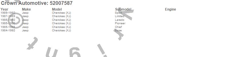 Crown Automotive is the premier manufacturer and distributor of quality replacement parts for Jeep® CJ™, Wrangler™, Cherokee™, Grand Cherokee™, Liberty™, and Commander™."From humble beginnings in 1963 in a small Boston storefront, Crown Automotive has consistently maintained its commitment to offering only quality parts and exceptional service. Today, with warehouses in Massachusetts, Georgia, Nevada, Spain, and the Czech Republic, totaling over 160,000 square feet, Crown Automotive continues to be the leader in quality replacement parts for Jeep® vehicles. With over 8,000 different parts in stock for Jeep® vehicles from 1942 on up, Crown has the largest stock of replacement parts for Jeep® vehicles, including factory-discontinued parts. In fact, many of the older Jeeps are still on (and off) the road thanks to Crown parts. The Crown line consists of axle, body, brake, clutch, cooling, driveline, electrical, engine, exhaust, fuel, steering, suspension, transmission and transfer case components. Crown Automotive also offers an exclusive line of component kits and accessory products. Because we know that Jeeps are driven harder than most other vehicles, we emphasize offering only quality parts. In fact, we test parts on Jeeps before distributing them to our dealers to insure that they meet our standards for quality. Crown also supports its entire line with a 12 month/12,000 mile warranty to insure our dealers and their customers of our commitment to offering quality parts. We know from experience that Jeep® owners would rather pay a little more for a good quality part that's backed by a strong guarantee. But we know that price is important as well. So, not only will you find Crown parts to be of exceptional quality, but you'll find them at a great price too.