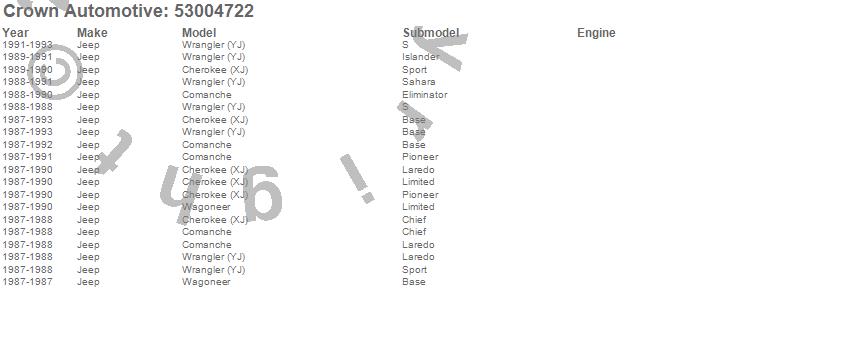 Crown Automotive is the premier manufacturer and distributor of quality replacement parts for Jeep® CJ™, Wrangler™, Cherokee™, Grand Cherokee™, Liberty™, and Commander™."From humble beginnings in 1963 in a small Boston storefront, Crown Automotive has consistently maintained its commitment to offering only quality parts and exceptional service. Today, with warehouses in Massachusetts, Georgia, Nevada, Spain, and the Czech Republic, totaling over 160,000 square feet, Crown Automotive continues to be the leader in quality replacement parts for Jeep® vehicles. With over 8,000 different parts in stock for Jeep® vehicles from 1942 on up, Crown has the largest stock of replacement parts for Jeep® vehicles, including factory-discontinued parts. In fact, many of the older Jeeps are still on (and off) the road thanks to Crown parts. The Crown line consists of axle, body, brake, clutch, cooling, driveline, electrical, engine, exhaust, fuel, steering, suspension, transmission and transfer case components. Crown Automotive also offers an exclusive line of component kits and accessory products. Because we know that Jeeps are driven harder than most other vehicles, we emphasize offering only quality parts. In fact, we test parts on Jeeps before distributing them to our dealers to insure that they meet our standards for quality. Crown also supports its entire line with a 12 month/12,000 mile warranty to insure our dealers and their customers of our commitment to offering quality parts. We know from experience that Jeep® owners would rather pay a little more for a good quality part that's backed by a strong guarantee. But we know that price is important as well. So, not only will you find Crown parts to be of exceptional quality, but you'll find them at a great price too.
