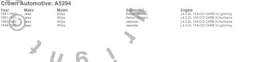 Crown Automotive is the premier manufacturer and distributor of quality replacement parts for Jeep® CJ™, Wrangler™, Cherokee™, Grand Cherokee™, Liberty™, and Commander™."From humble beginnings in 1963 in a small Boston storefront, Crown Automotive has consistently maintained its commitment to offering only quality parts and exceptional service. Today, with warehouses in Massachusetts, Georgia, Nevada, Spain, and the Czech Republic, totaling over 160,000 square feet, Crown Automotive continues to be the leader in quality replacement parts for Jeep® vehicles. With over 8,000 different parts in stock for Jeep® vehicles from 1942 on up, Crown has the largest stock of replacement parts for Jeep® vehicles, including factory-discontinued parts. In fact, many of the older Jeeps are still on (and off) the road thanks to Crown parts. The Crown line consists of axle, body, brake, clutch, cooling, driveline, electrical, engine, exhaust, fuel, steering, suspension, transmission and transfer case components. Crown Automotive also offers an exclusive line of component kits and accessory products. Because we know that Jeeps are driven harder than most other vehicles, we emphasize offering only quality parts. In fact, we test parts on Jeeps before distributing them to our dealers to insure that they meet our standards for quality. Crown also supports its entire line with a 12 month/12,000 mile warranty to insure our dealers and their customers of our commitment to offering quality parts. We know from experience that Jeep® owners would rather pay a little more for a good quality part that's backed by a strong guarantee. But we know that price is important as well. So, not only will you find Crown parts to be of exceptional quality, but you'll find them at a great price too.