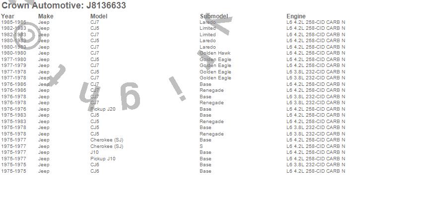 Cherokee (SJ), CJ5, CJ6, CJ7, J10, J20, Jeep, 1986, 1985, 1984, 1983, 1982, 1981, 1980, 1979, 1978, 1977, 1976, 1975 more…