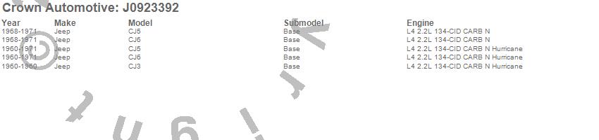 Crown Automotive is the premier manufacturer and distributor of quality replacement parts for Jeep® CJ™, Wrangler™, Cherokee™, Grand Cherokee™, Liberty™, and Commander™."From humble beginnings in 1963 in a small Boston storefront, Crown Automotive has consistently maintained its commitment to offering only quality parts and exceptional service. Today, with warehouses in Massachusetts, Georgia, Nevada, Spain, and the Czech Republic, totaling over 160,000 square feet, Crown Automotive continues to be the leader in quality replacement parts for Jeep® vehicles. With over 8,000 different parts in stock for Jeep® vehicles from 1942 on up, Crown has the largest stock of replacement parts for Jeep® vehicles, including factory-discontinued parts. In fact, many of the older Jeeps are still on (and off) the road thanks to Crown parts. The Crown line consists of axle, body, brake, clutch, cooling, driveline, electrical, engine, exhaust, fuel, steering, suspension, transmission and transfer case components. Crown Automotive also offers an exclusive line of component kits and accessory products. Because we know that Jeeps are driven harder than most other vehicles, we emphasize offering only quality parts. In fact, we test parts on Jeeps before distributing them to our dealers to insure that they meet our standards for quality. Crown also supports its entire line with a 12 month/12,000 mile warranty to insure our dealers and their customers of our commitment to offering quality parts. We know from experience that Jeep® owners would rather pay a little more for a good quality part that's backed by a strong guarantee. But we know that price is important as well. So, not only will you find Crown parts to be of exceptional quality, but you'll find them at a great price too.