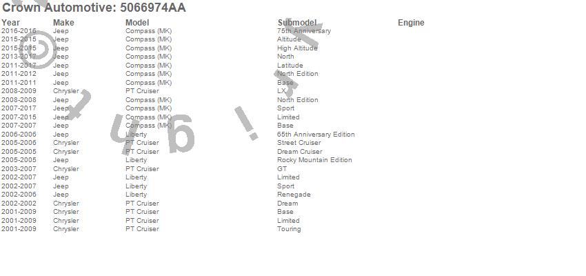 Compass, Liberty, PT Cruiser, Chrysler, Jeep, 2015, 2014, 2013, 2012, 2011, 2010, 2009, 2008, 2007, 2006, 2005, 2004, 2003, 2002, 2001 more…