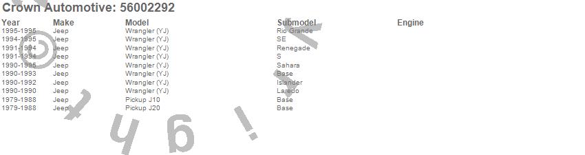 J10, J20, Wrangler (YJ), Jeep, 1995, 1994, 1993, 1992, 1991, 1990, 1988, 1987, 1986, 1985, 1984, 1983, 1982, 1981, 1980, 1979 more…