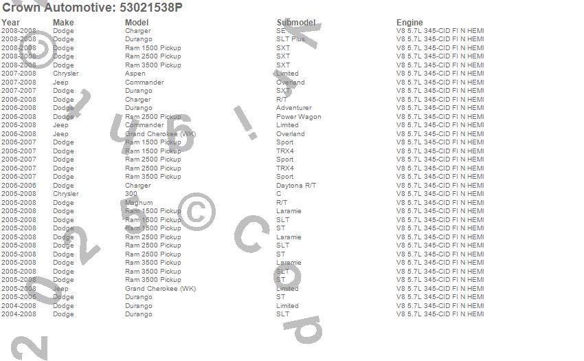 300, Aspen, Charger, Commander, Durango, Grand Cherokee (WK), Magnum, Ram 1500, Ram 2500, Ram 3500, Chrysler, Dodge, Jeep, 2008, 2007, 2006, 2005, 2004 more…