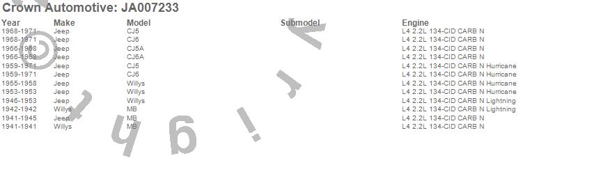 Crown Automotive is the premier manufacturer and distributor of quality replacement parts for Jeep® CJ™, Wrangler™, Cherokee™, Grand Cherokee™, Liberty™, and Commander™."From humble beginnings in 1963 in a small Boston storefront, Crown Automotive has consistently maintained its commitment to offering only quality parts and exceptional service. Today, with warehouses in Massachusetts, Georgia, Nevada, Spain, and the Czech Republic, totaling over 160,000 square feet, Crown Automotive continues to be the leader in quality replacement parts for Jeep® vehicles. With over 8,000 different parts in stock for Jeep® vehicles from 1942 on up, Crown has the largest stock of replacement parts for Jeep® vehicles, including factory-discontinued parts. In fact, many of the older Jeeps are still on (and off) the road thanks to Crown parts. The Crown line consists of axle, body, brake, clutch, cooling, driveline, electrical, engine, exhaust, fuel, steering, suspension, transmission and transfer case components. Crown Automotive also offers an exclusive line of component kits and accessory products. Because we know that Jeeps are driven harder than most other vehicles, we emphasize offering only quality parts. In fact, we test parts on Jeeps before distributing them to our dealers to insure that they meet our standards for quality. Crown also supports its entire line with a 12 month/12,000 mile warranty to insure our dealers and their customers of our commitment to offering quality parts. We know from experience that Jeep® owners would rather pay a little more for a good quality part that's backed by a strong guarantee. But we know that price is important as well. So, not only will you find Crown parts to be of exceptional quality, but you'll find them at a great price too.