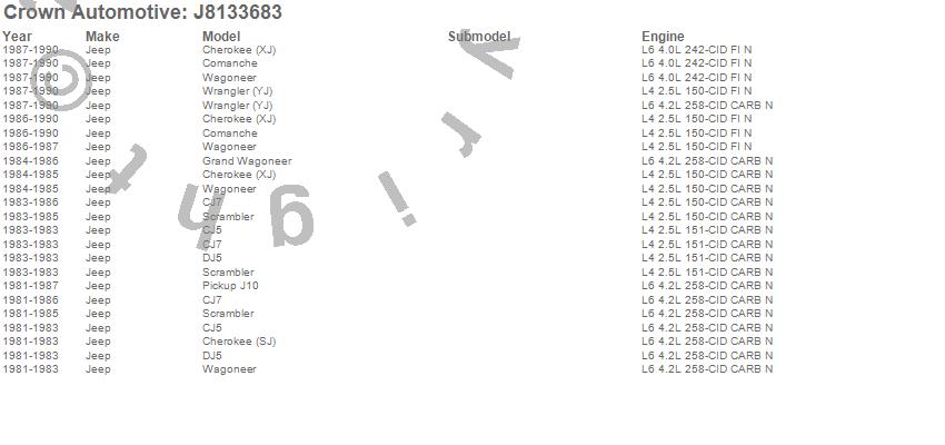 Crown Automotive is the premier manufacturer and distributor of quality replacement parts for Jeep® CJ™, Wrangler™, Cherokee™, Grand Cherokee™, Liberty™, and Commander™."From humble beginnings in 1963 in a small Boston storefront, Crown Automotive has consistently maintained its commitment to offering only quality parts and exceptional service. Today, with warehouses in Massachusetts, Georgia, Nevada, Spain, and the Czech Republic, totaling over 160,000 square feet, Crown Automotive continues to be the leader in quality replacement parts for Jeep® vehicles. With over 8,000 different parts in stock for Jeep® vehicles from 1942 on up, Crown has the largest stock of replacement parts for Jeep® vehicles, including factory-discontinued parts. In fact, many of the older Jeeps are still on (and off) the road thanks to Crown parts. The Crown line consists of axle, body, brake, clutch, cooling, driveline, electrical, engine, exhaust, fuel, steering, suspension, transmission and transfer case components. Crown Automotive also offers an exclusive line of component kits and accessory products. Because we know that Jeeps are driven harder than most other vehicles, we emphasize offering only quality parts. In fact, we test parts on Jeeps before distributing them to our dealers to insure that they meet our standards for quality. Crown also supports its entire line with a 12 month/12,000 mile warranty to insure our dealers and their customers of our commitment to offering quality parts. We know from experience that Jeep® owners would rather pay a little more for a good quality part that's backed by a strong guarantee. But we know that price is important as well. So, not only will you find Crown parts to be of exceptional quality, but you'll find them at a great price too.