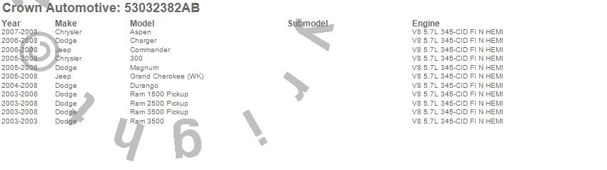 300, Aspen, Charger, Commander, Durango, Grand Cherokee (WK), Magnum, Ram 1500, Ram 2500, Ram 3500, Chrysler, Dodge, Jeep, 2008, 2007, 2006, 2005, 2004, 2003 more…