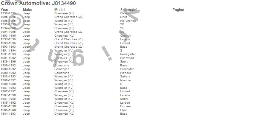 Cherokee (XJ), Comanche, Grand Cherokee (ZJ), Wrangler (YJ), Jeep, 2000, 1999, 1998, 1997, 1996, 1995, 1994, 1993, 1992, 1991, 1990, 1989, 1988, 1987, 1986 more…