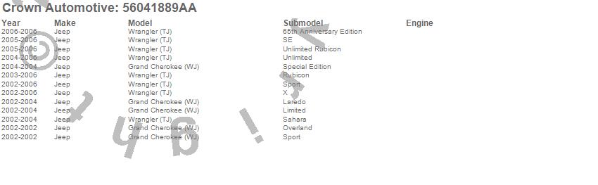 Crown Automotive is the premier manufacturer and distributor of quality replacement parts for Jeep® CJ™, Wrangler™, Cherokee™, Grand Cherokee™, Liberty™, and Commander™."From humble beginnings in 1963 in a small Boston storefront, Crown Automotive has consistently maintained its commitment to offering only quality parts and exceptional service. Today, with warehouses in Massachusetts, Georgia, Nevada, Spain, and the Czech Republic, totaling over 160,000 square feet, Crown Automotive continues to be the leader in quality replacement parts for Jeep® vehicles. With over 8,000 different parts in stock for Jeep® vehicles from 1942 on up, Crown has the largest stock of replacement parts for Jeep® vehicles, including factory-discontinued parts. In fact, many of the older Jeeps are still on (and off) the road thanks to Crown parts. The Crown line consists of axle, body, brake, clutch, cooling, driveline, electrical, engine, exhaust, fuel, steering, suspension, transmission and transfer case components. Crown Automotive also offers an exclusive line of component kits and accessory products. Because we know that Jeeps are driven harder than most other vehicles, we emphasize offering only quality parts. In fact, we test parts on Jeeps before distributing them to our dealers to insure that they meet our standards for quality. Crown also supports its entire line with a 12 month/12,000 mile warranty to insure our dealers and their customers of our commitment to offering quality parts. We know from experience that Jeep® owners would rather pay a little more for a good quality part that's backed by a strong guarantee. But we know that price is important as well. So, not only will you find Crown parts to be of exceptional quality, but you'll find them at a great price too.