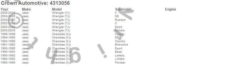 Cherokee (XJ), Wrangler (TJ), Jeep, 2006, 2005, 2004, 2003, 2002, 2001, 2000, 1996, 1995, 1994, 1993, 1992, 1991, 1990 more…