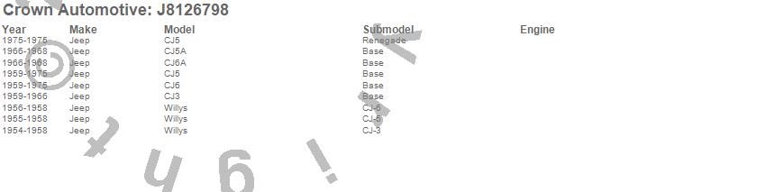 Crown Automotive is the premier manufacturer and distributor of quality replacement parts for Jeep® CJ™, Wrangler™, Cherokee™, Grand Cherokee™, Liberty™, and Commander™."From humble beginnings in 1963 in a small Boston storefront, Crown Automotive has consistently maintained its commitment to offering only quality parts and exceptional service. Today, with warehouses in Massachusetts, Georgia, Nevada, Spain, and the Czech Republic, totaling over 160,000 square feet, Crown Automotive continues to be the leader in quality replacement parts for Jeep® vehicles. With over 8,000 different parts in stock for Jeep® vehicles from 1942 on up, Crown has the largest stock of replacement parts for Jeep® vehicles, including factory-discontinued parts. In fact, many of the older Jeeps are still on (and off) the road thanks to Crown parts. The Crown line consists of axle, body, brake, clutch, cooling, driveline, electrical, engine, exhaust, fuel, steering, suspension, transmission and transfer case components. Crown Automotive also offers an exclusive line of component kits and accessory products. Because we know that Jeeps are driven harder than most other vehicles, we emphasize offering only quality parts. In fact, we test parts on Jeeps before distributing them to our dealers to insure that they meet our standards for quality. Crown also supports its entire line with a 12 month/12,000 mile warranty to insure our dealers and their customers of our commitment to offering quality parts. We know from experience that Jeep® owners would rather pay a little more for a good quality part that's backed by a strong guarantee. But we know that price is important as well. So, not only will you find Crown parts to be of exceptional quality, but you'll find them at a great price too.