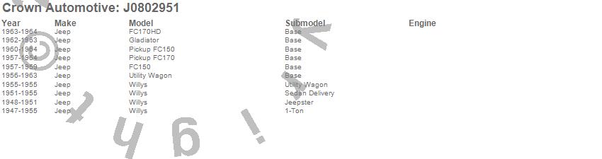 Crown Automotive is the premier manufacturer and distributor of quality replacement parts for Jeep® CJ™, Wrangler™, Cherokee™, Grand Cherokee™, Liberty™, and Commander™."From humble beginnings in 1963 in a small Boston storefront, Crown Automotive has consistently maintained its commitment to offering only quality parts and exceptional service. Today, with warehouses in Massachusetts, Georgia, Nevada, Spain, and the Czech Republic, totaling over 160,000 square feet, Crown Automotive continues to be the leader in quality replacement parts for Jeep® vehicles. With over 8,000 different parts in stock for Jeep® vehicles from 1942 on up, Crown has the largest stock of replacement parts for Jeep® vehicles, including factory-discontinued parts. In fact, many of the older Jeeps are still on (and off) the road thanks to Crown parts. The Crown line consists of axle, body, brake, clutch, cooling, driveline, electrical, engine, exhaust, fuel, steering, suspension, transmission and transfer case components. Crown Automotive also offers an exclusive line of component kits and accessory products. Because we know that Jeeps are driven harder than most other vehicles, we emphasize offering only quality parts. In fact, we test parts on Jeeps before distributing them to our dealers to insure that they meet our standards for quality. Crown also supports its entire line with a 12 month/12,000 mile warranty to insure our dealers and their customers of our commitment to offering quality parts. We know from experience that Jeep® owners would rather pay a little more for a good quality part that's backed by a strong guarantee. But we know that price is important as well. So, not only will you find Crown parts to be of exceptional quality, but you'll find them at a great price too.